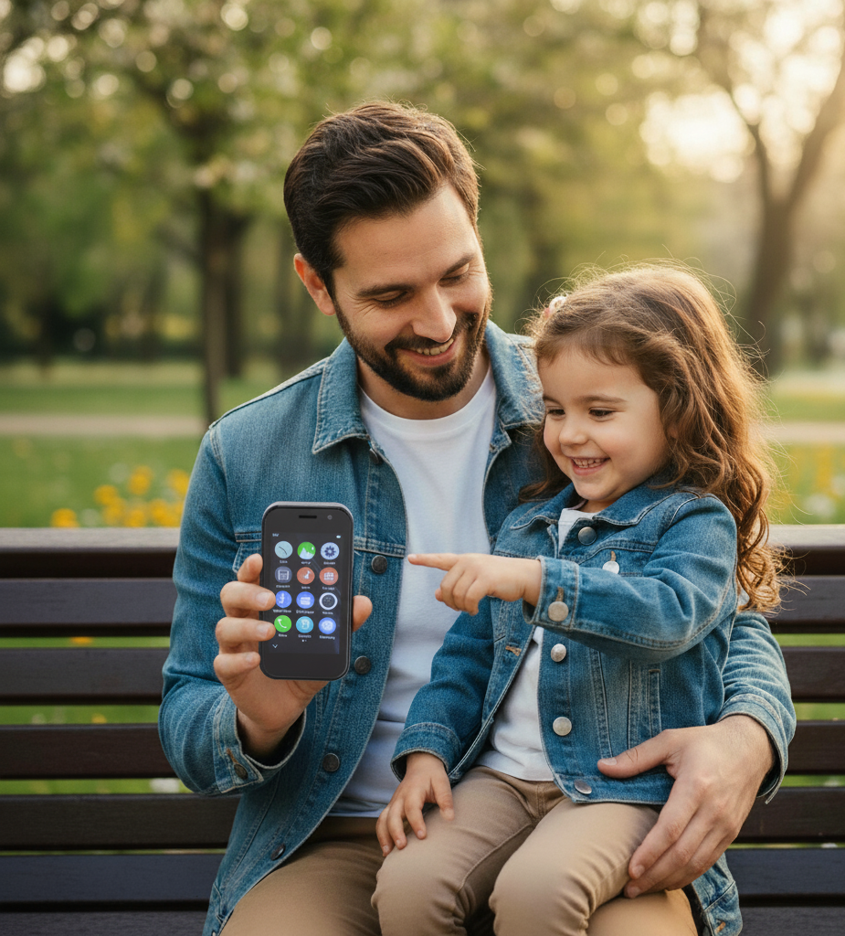 Per una connessione semplice e sincera. Questo mini smartphone compatto ti accompagna ovunque, leggero e sempre a portata di mano, per condividere sorrisi e momenti con chi ami.